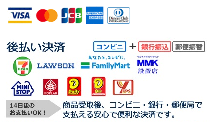 クレジット支払いまたは後払い決済に対応しております。